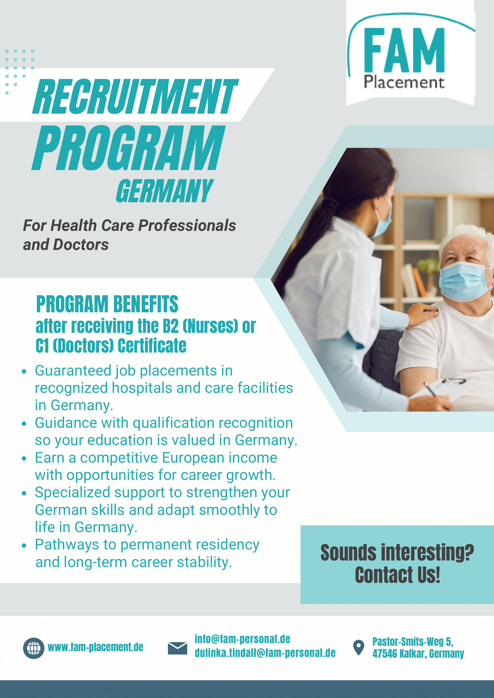 Ihr Team von FAM freut sich auf Ihre aussagekräftigen Bewerbungsunterlagen. Gemeinsam möchten wir mit Ihnen, die für Sie passende Stelle besetzen. Wir garantieren Ihnen eine persönliche und individuelle Betreuung.